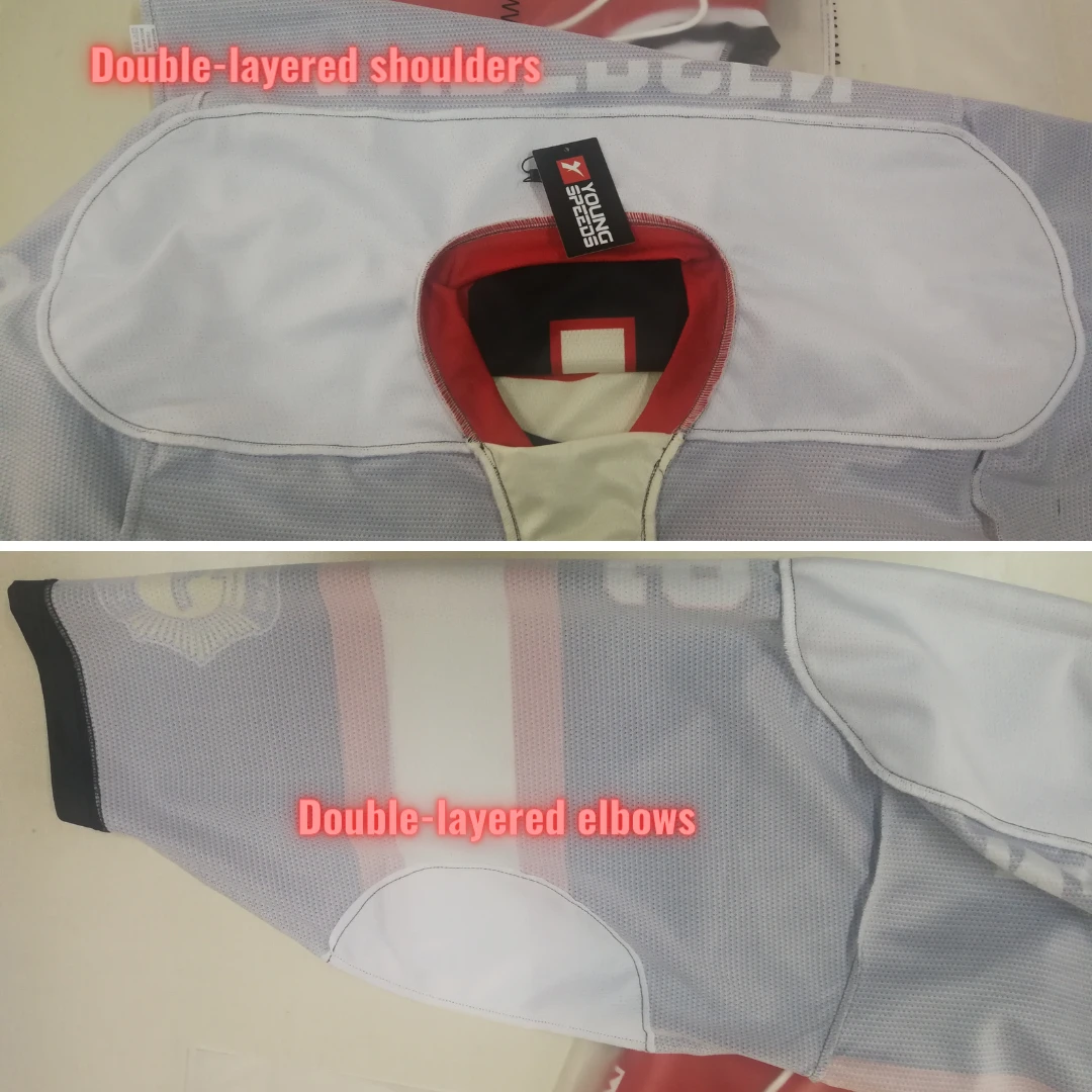 - Double-layered shoulders and elbows, make Youngspeeds hockey jerseys fairly durable.